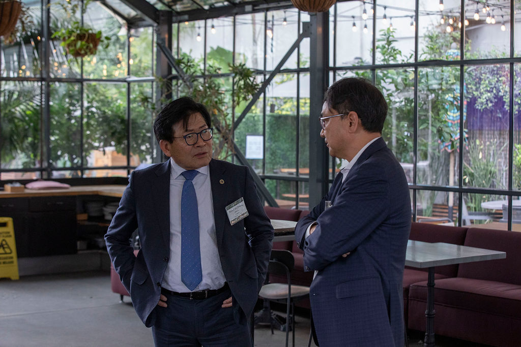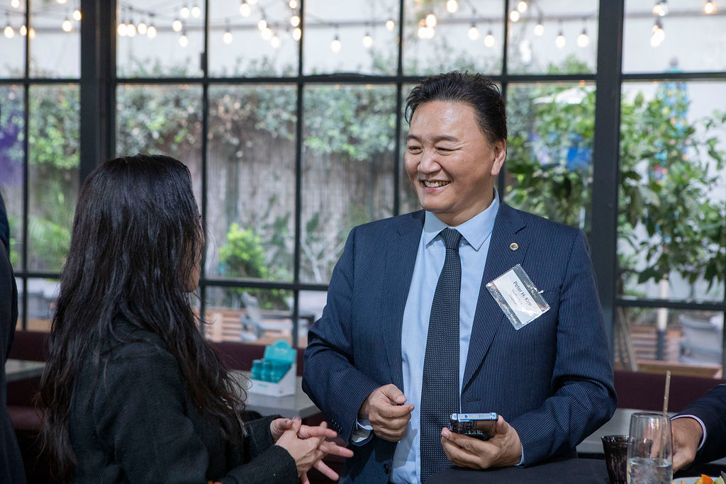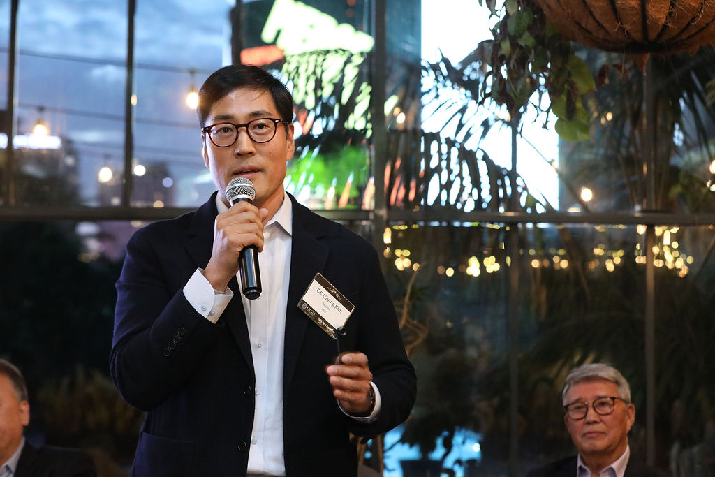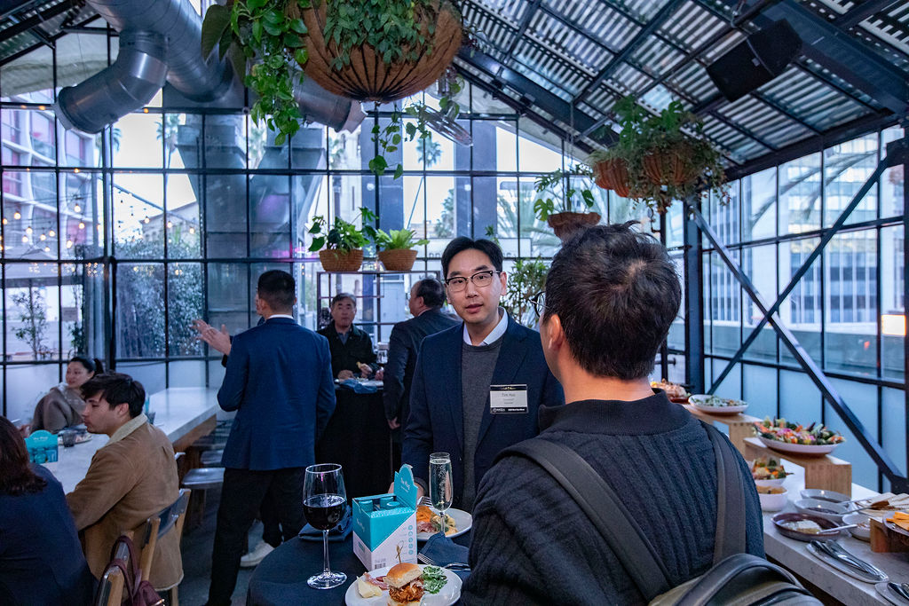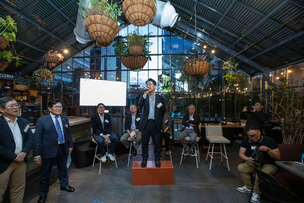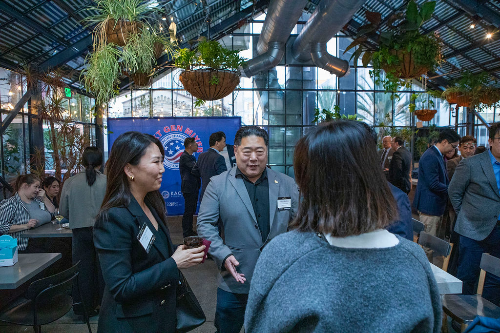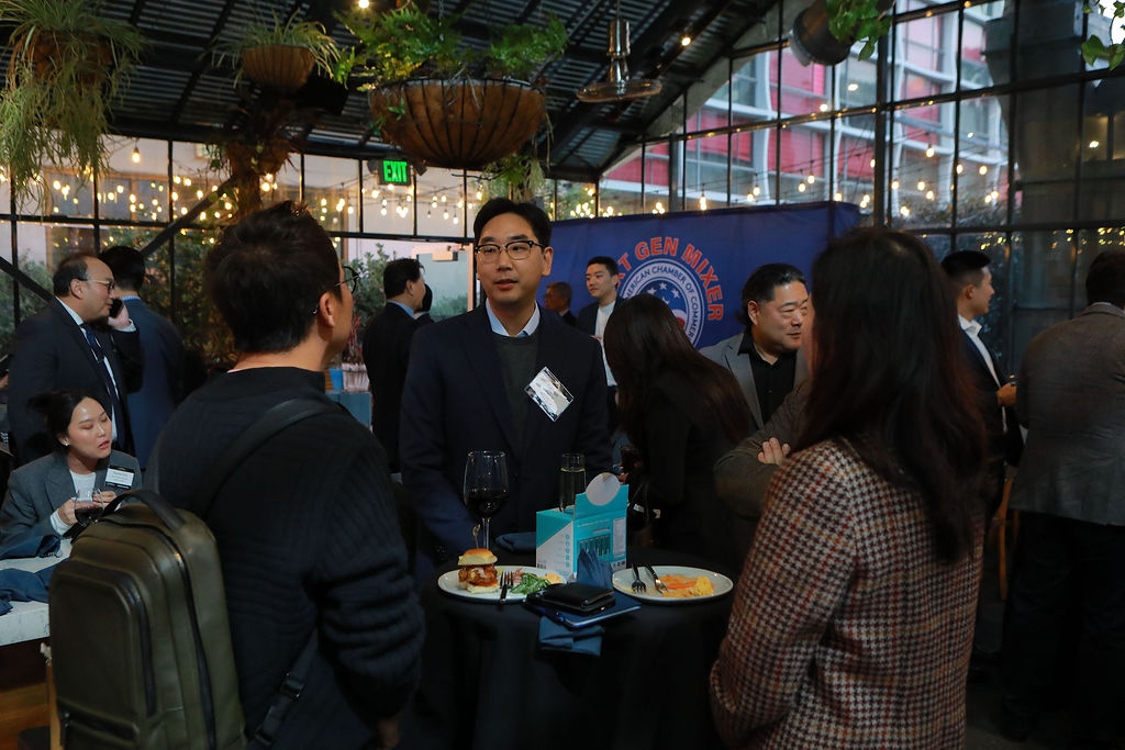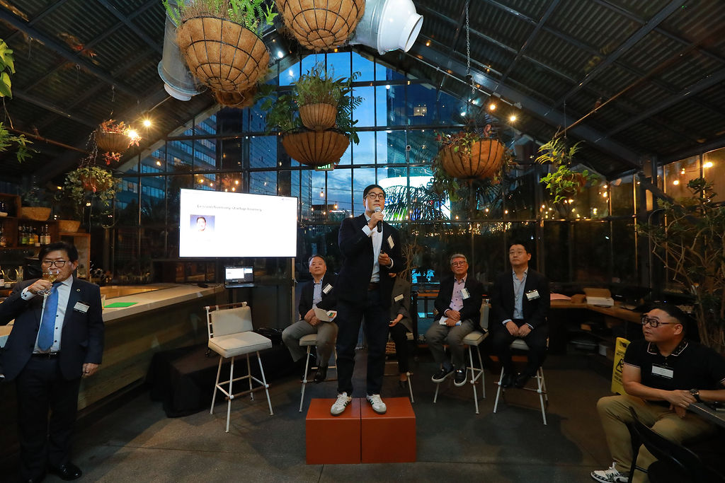 지난 27일 LA한인타운 라인호텔에서 열린 LA한인상의 주최 'NEXT GEN MIXER'에서 이용기 회장이 멘토로서 비즈니스 파트너십의 장단점에 대해 소개하고 있다. 참가자들이 네트워킹을 하고 있다. LA한인상의 정상봉 회장이 개막에 앞서 인사말을 하고 있다. 키노트 스피커들 믹서를 준비한 상의 이사들이 기념촬영을 했다. 왼쪽부터 CK KIM 대표, DOUG PAK 대표, 정상봉 회장, 류민지 팀장, 이용기 회장, LA한인상의의 션모 부회장, 알렉스 차 이사, 제이슨 송...