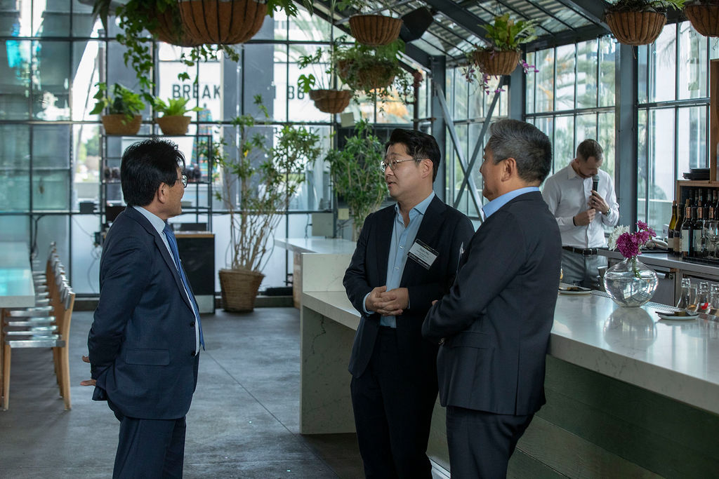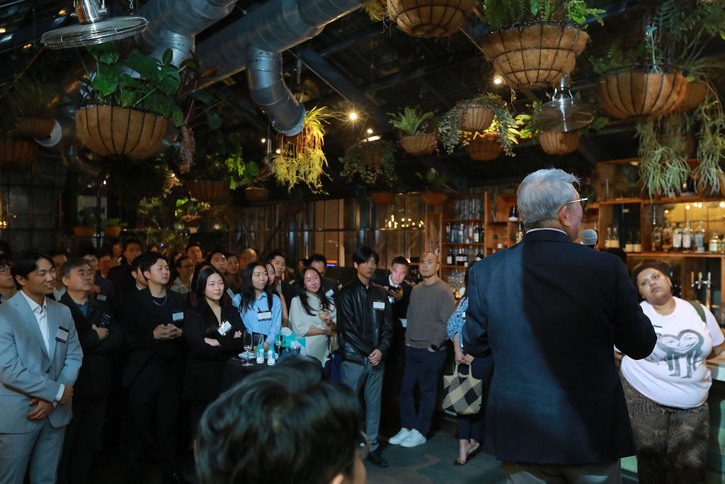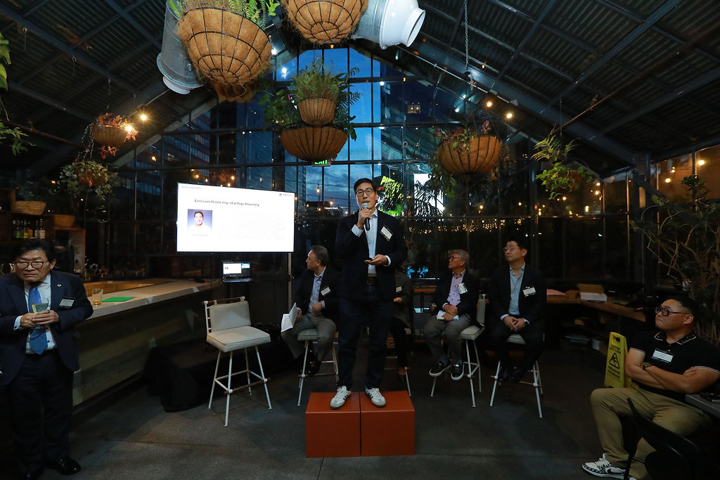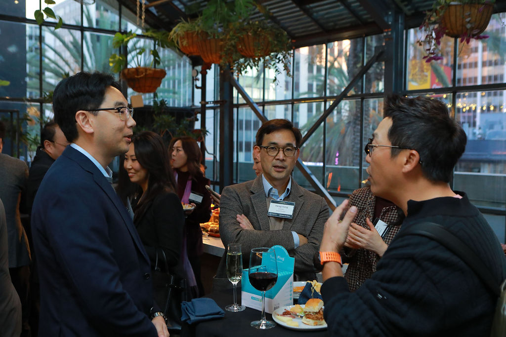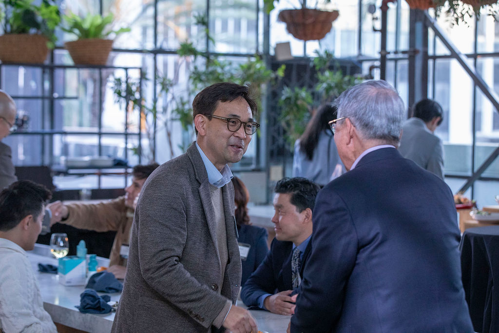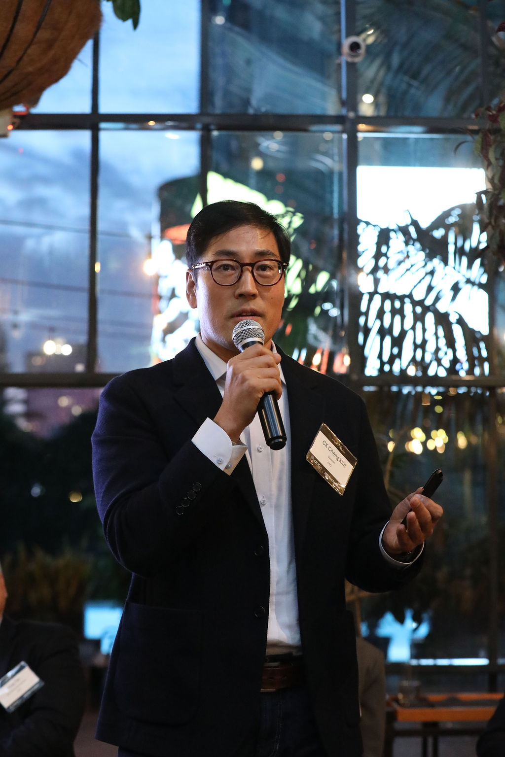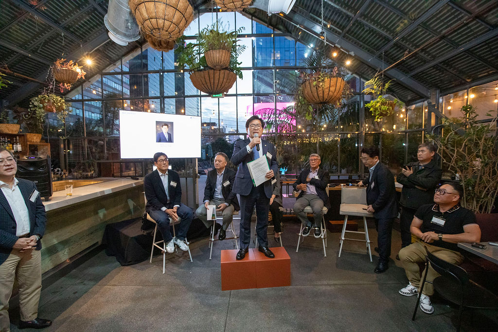 지난 27일 LA한인타운 라인호텔에서 열린 LA한인상의 주최 'NEXT GEN MIXER'에서 이용기 회장이 멘토로서 비즈니스 파트너십의 장단점에 대해 소개하고 있다. 참가자들이 네트워킹을 하고 있다. LA한인상의 정상봉 회장이 개막에 앞서 인사말을 하고 있다. 키노트 스피커들 믹서를 준비한 상의 이사들이 기념촬영을 했다. 왼쪽부터 CK KIM 대표, DOUG PAK 대표, 정상봉 회장, 류민지 팀장, 이용기 회장, LA한인상의의 션모 부회장, 알렉스 차 이사, 제이슨 송...