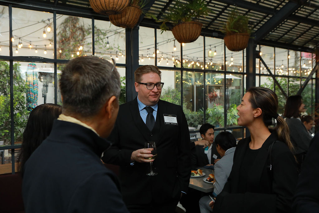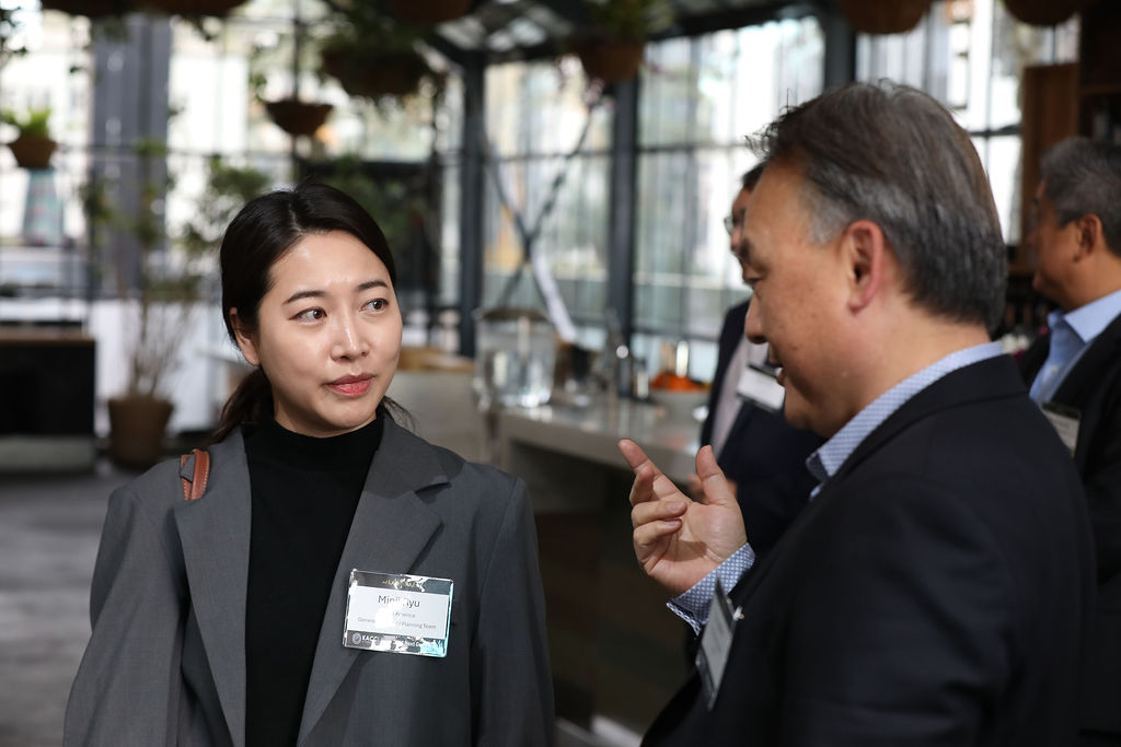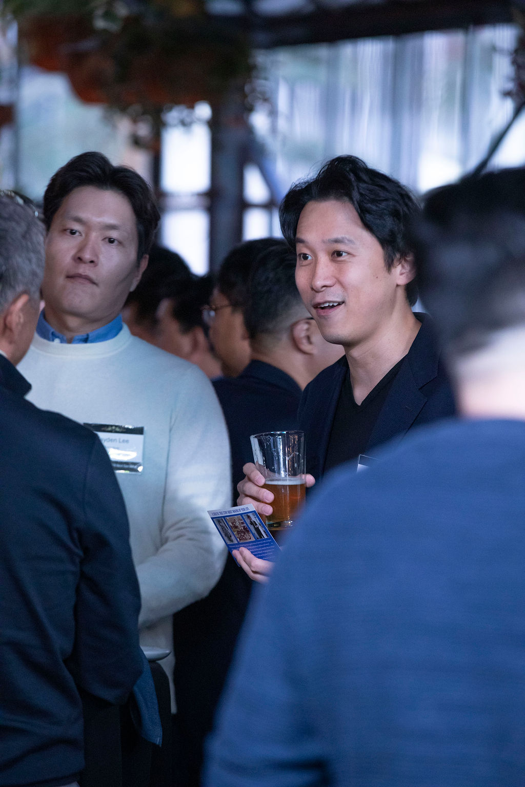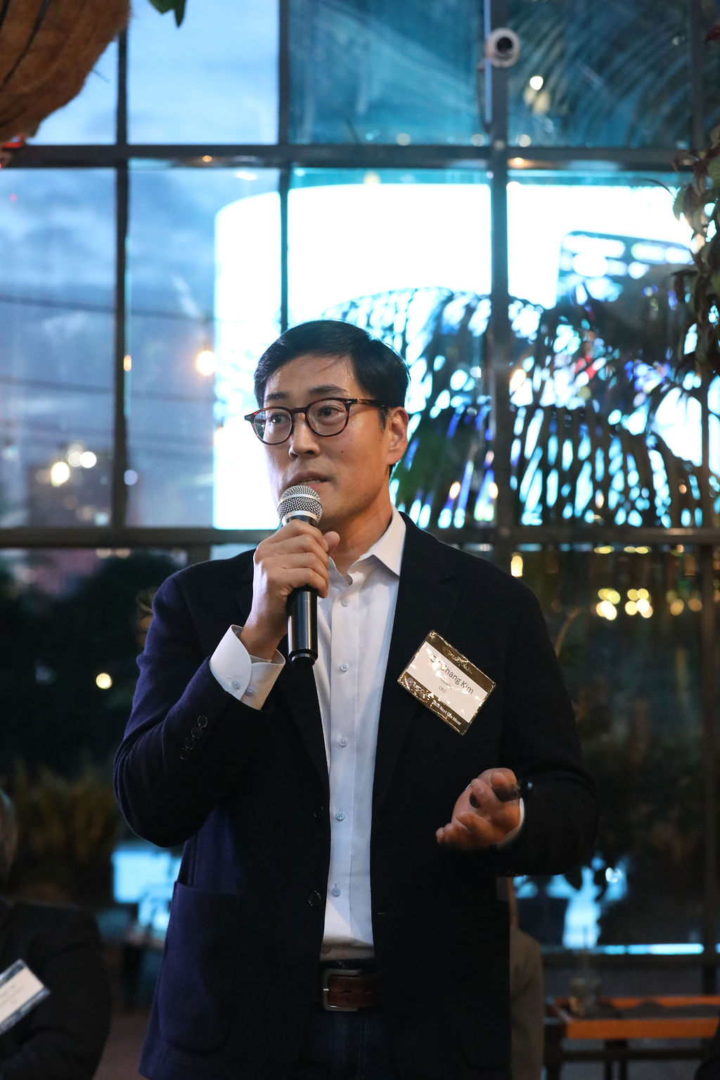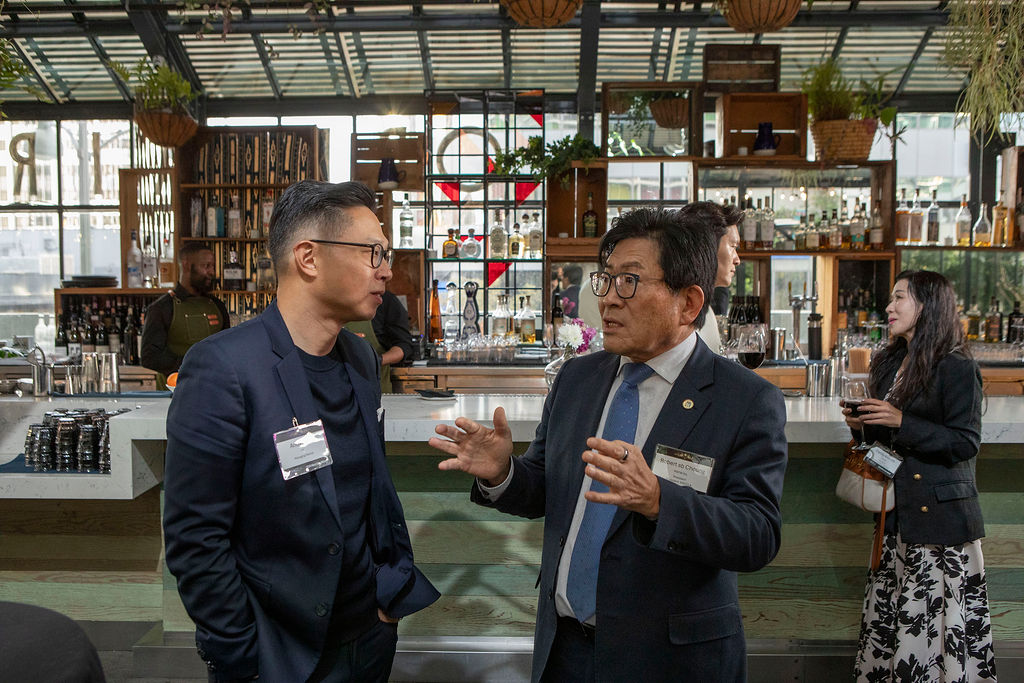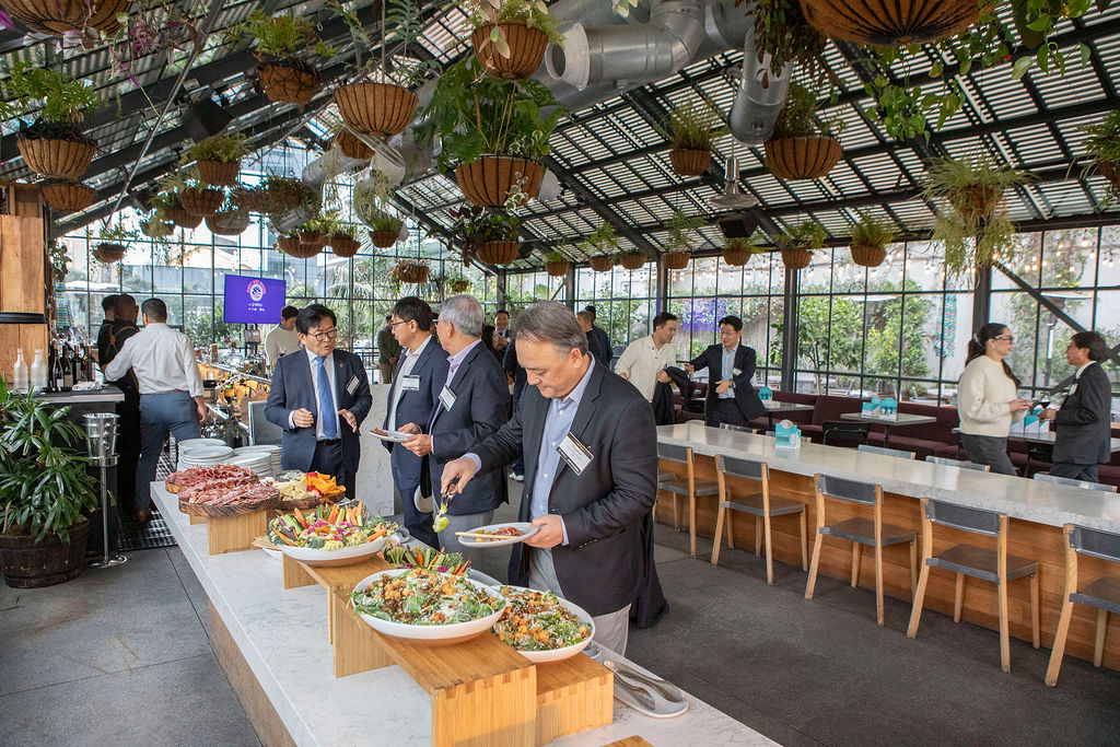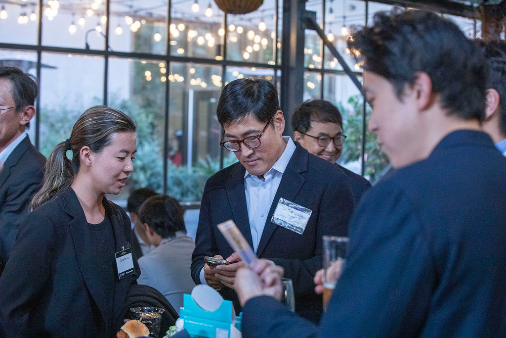 지난 27일 LA한인타운 라인호텔에서 열린 LA한인상의 주최 'NEXT GEN MIXER'에서 이용기 회장이 멘토로서 비즈니스 파트너십의 장단점에 대해 소개하고 있다. 참가자들이 네트워킹을 하고 있다. LA한인상의 정상봉 회장이 개막에 앞서 인사말을 하고 있다. 키노트 스피커들 믹서를 준비한 상의 이사들이 기념촬영을 했다. 왼쪽부터 CK KIM 대표, DOUG PAK 대표, 정상봉 회장, 류민지 팀장, 이용기 회장, LA한인상의의 션모 부회장, 알렉스 차 이사, 제이슨 송...