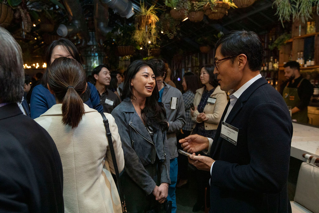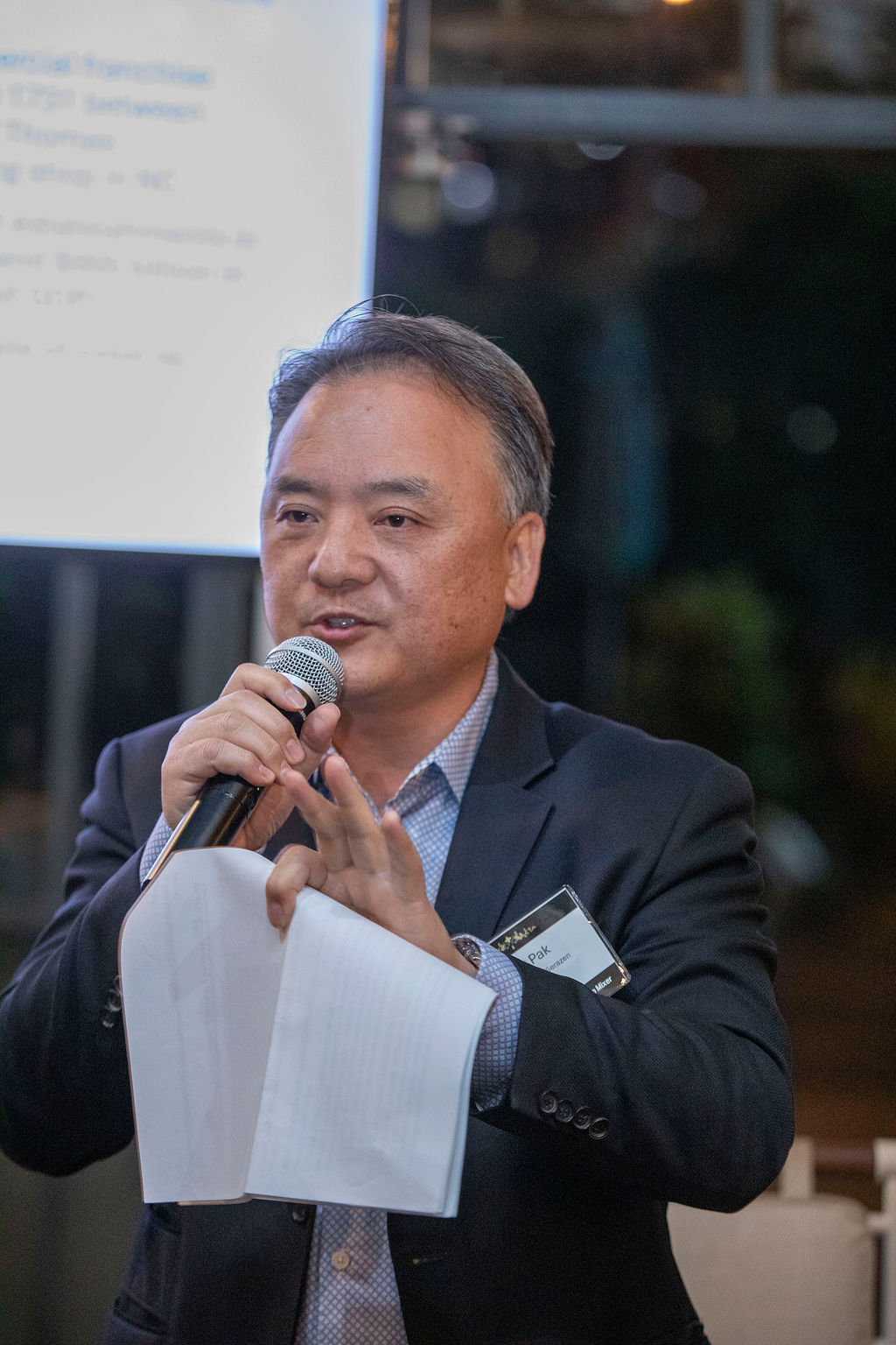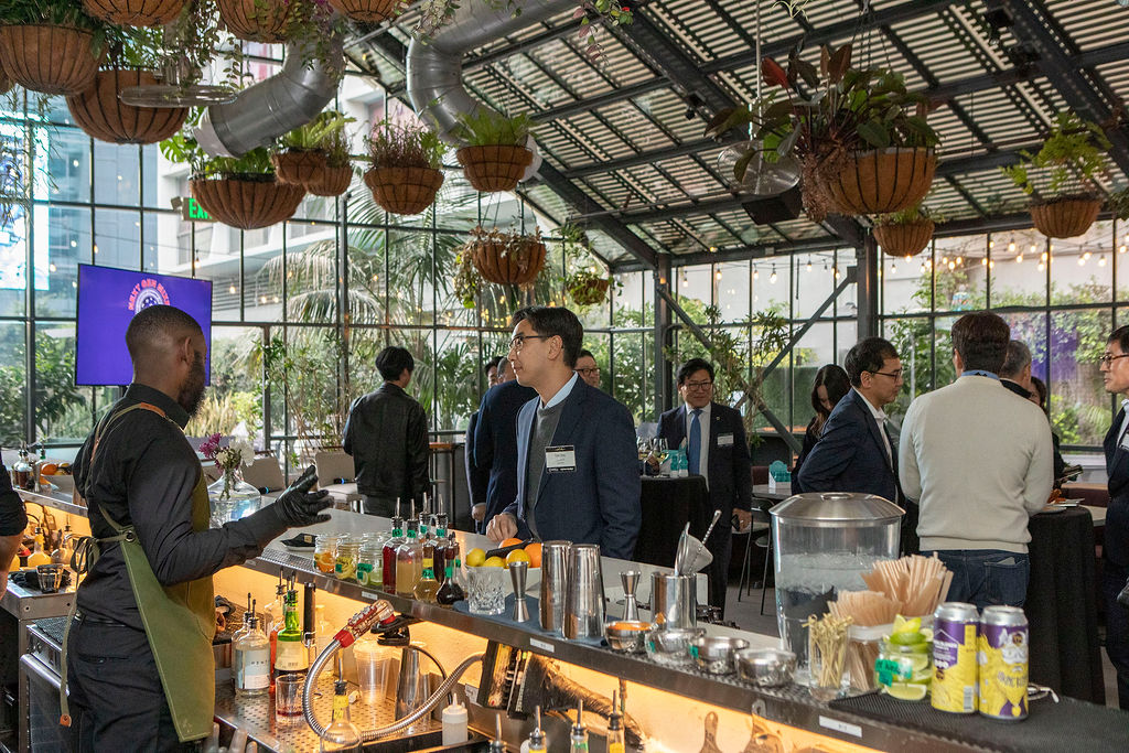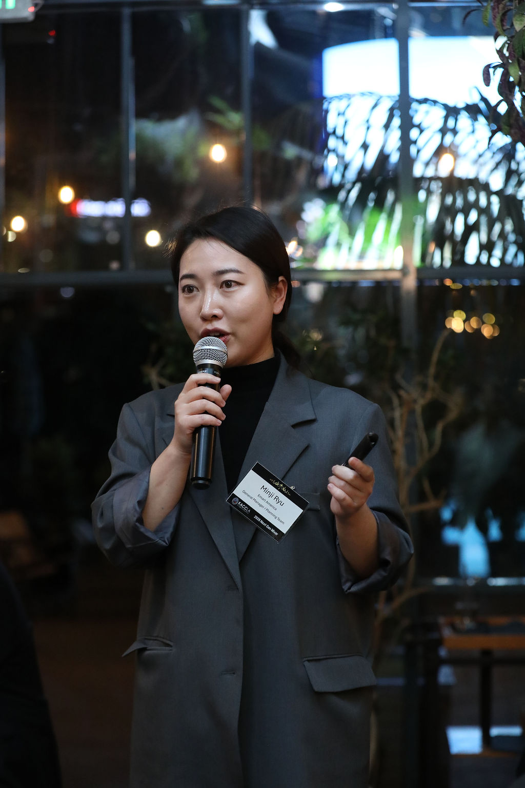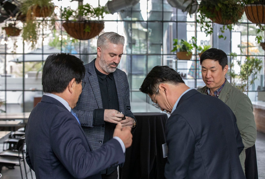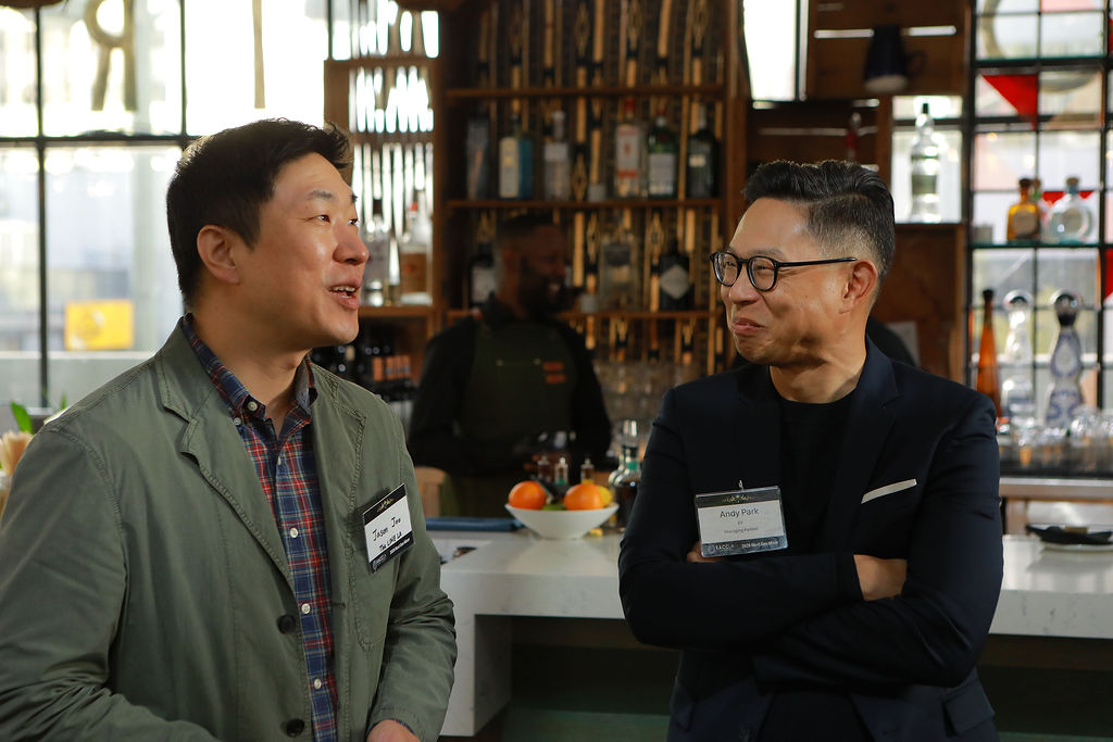 지난 27일 LA한인타운 라인호텔에서 열린 LA한인상의 주최 'NEXT GEN MIXER'에서 이용기 회장이 멘토로서 비즈니스 파트너십의 장단점에 대해 소개하고 있다. 참가자들이 네트워킹을 하고 있다. LA한인상의 정상봉 회장이 개막에 앞서 인사말을 하고 있다. 키노트 스피커들 믹서를 준비한 상의 이사들이 기념촬영을 했다. 왼쪽부터 CK KIM 대표, DOUG PAK 대표, 정상봉 회장, 류민지 팀장, 이용기 회장, LA한인상의의 션모 부회장, 알렉스 차 이사, 제이슨 송...