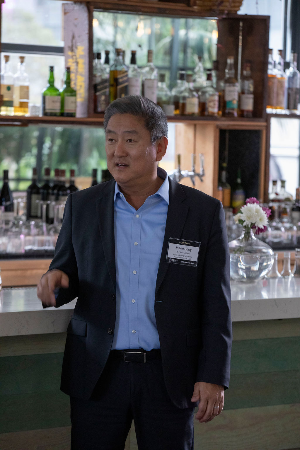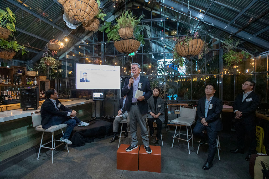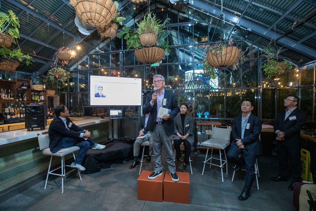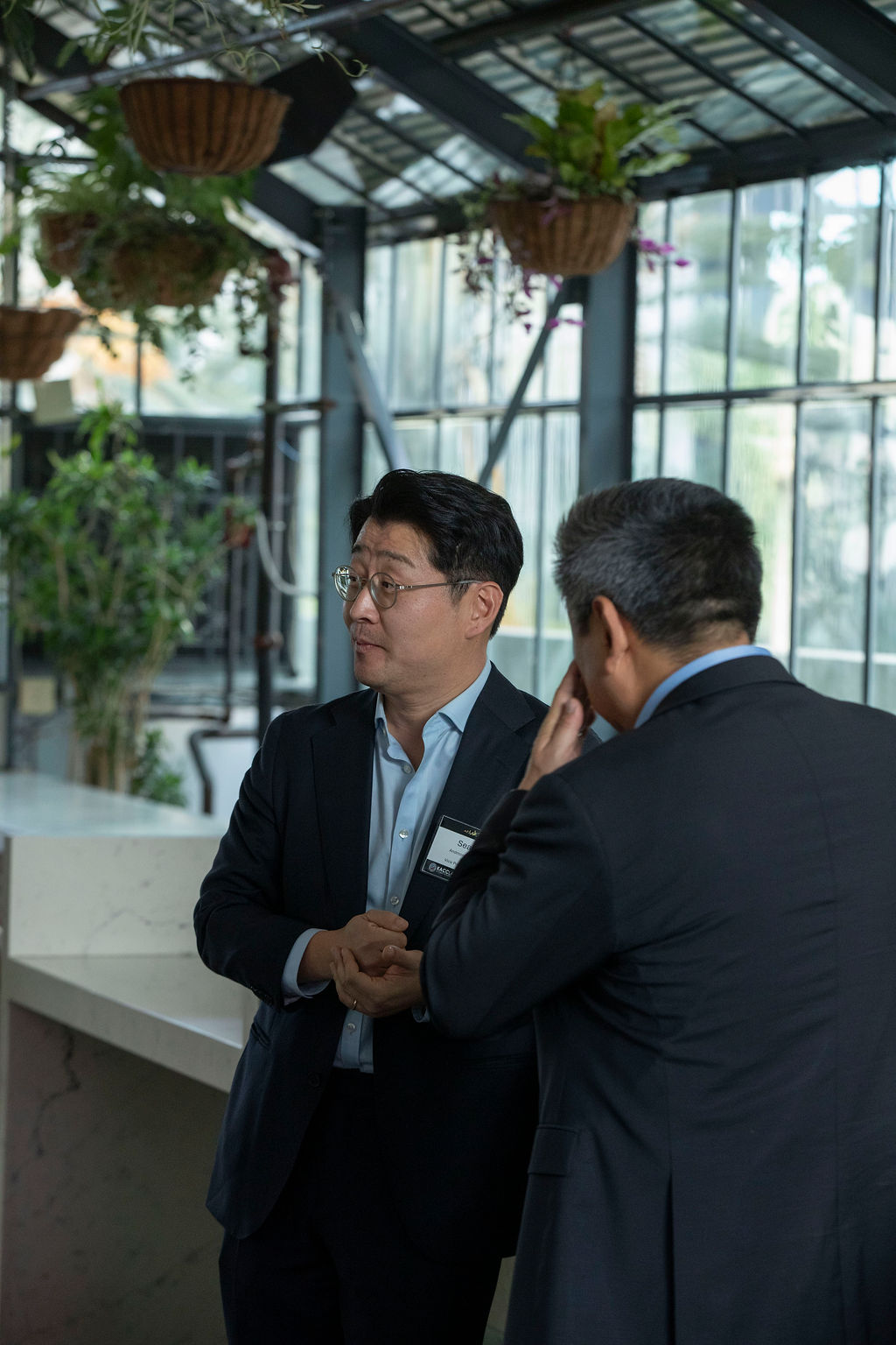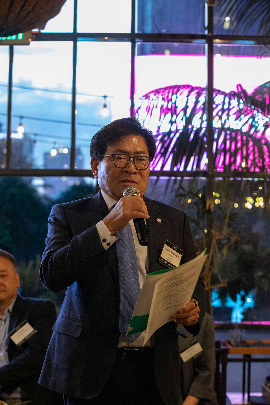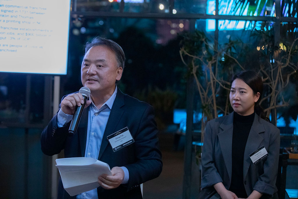 지난 27일 LA한인타운 라인호텔에서 열린 LA한인상의 주최 'NEXT GEN MIXER'에서 이용기 회장이 멘토로서 비즈니스 파트너십의 장단점에 대해 소개하고 있다. 참가자들이 네트워킹을 하고 있다. LA한인상의 정상봉 회장이 개막에 앞서 인사말을 하고 있다. 키노트 스피커들 믹서를 준비한 상의 이사들이 기념촬영을 했다. 왼쪽부터 CK KIM 대표, DOUG PAK 대표, 정상봉 회장, 류민지 팀장, 이용기 회장, LA한인상의의 션모 부회장, 알렉스 차 이사, 제이슨 송...